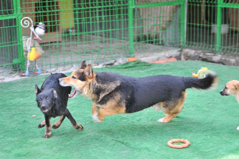 Bas verteidigt sein Futter gegenüber anderen Hunden. Bei weiteren Hunden im Haushalt sei hierauf zu achten, in dem man sie z.B. getrennt voneinander füttert.